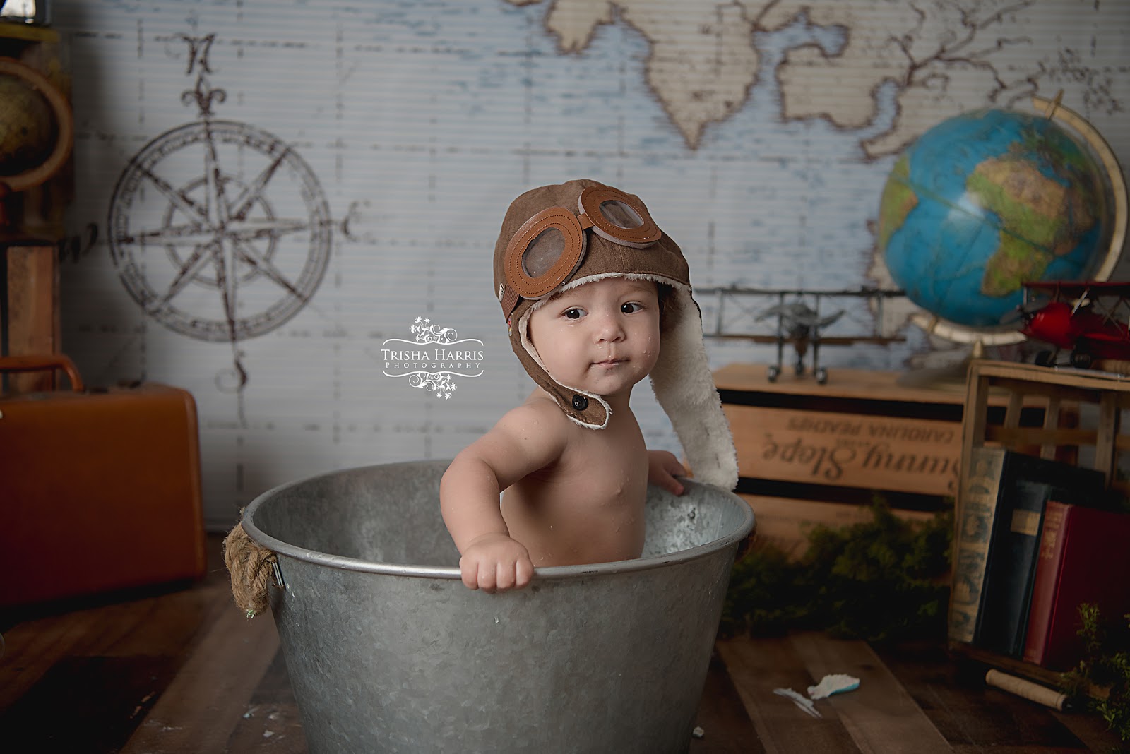 I love the aviator theme we did for this session. It just reminds me of classic childhood youth and imagination. Especially when he is wearing the hat in the tub! Love it.